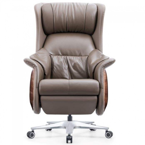 Chất liệu: Đệm ngồi và tựa lưng mút đàn hồi cao mật độ 45D bọc da thật mặt tiếp xúc. Khung và đế ghế sơn phủ dạng telescopic